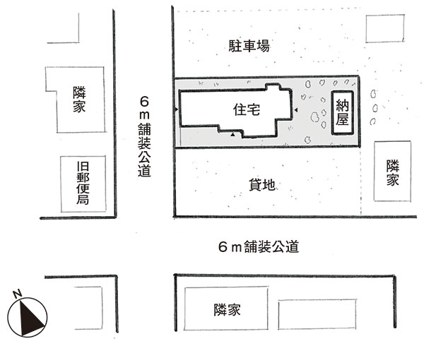 | 接道状況 | 西側が幅約6mの舗装公道に接する。 |