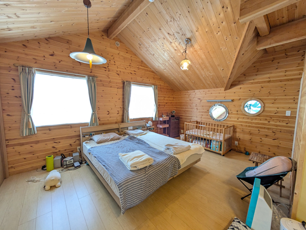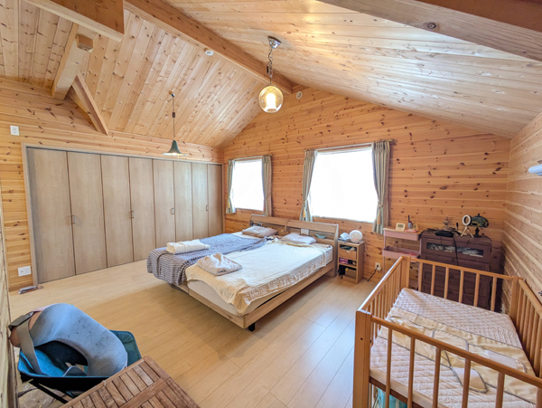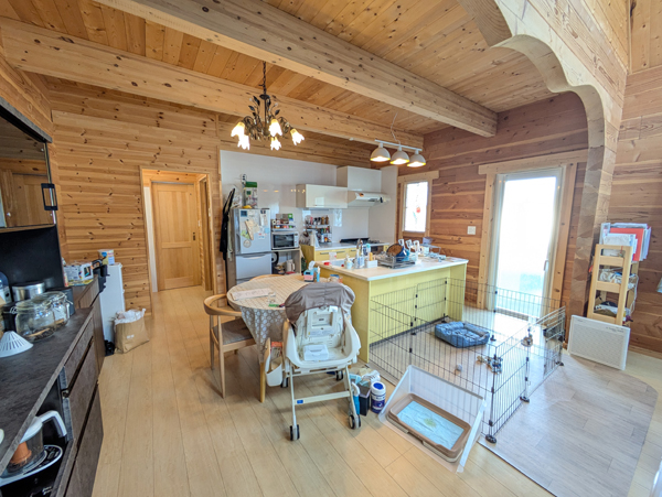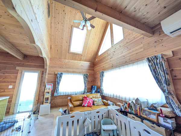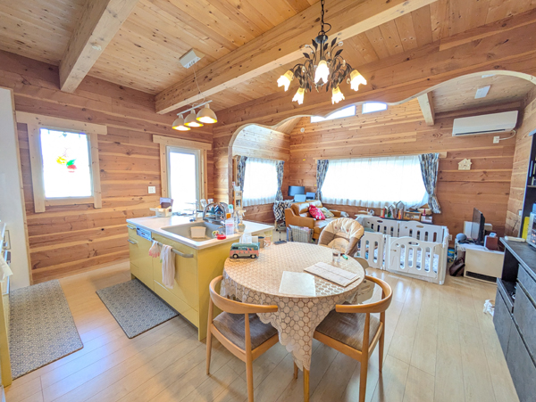 上州の閑静な新興住宅地に佇む、令和4年築の吹き抜けログハウス4300万円