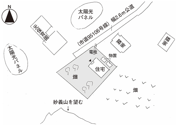 | 接道状況 | 北側が幅約2.6mの舗装公道に接する |
