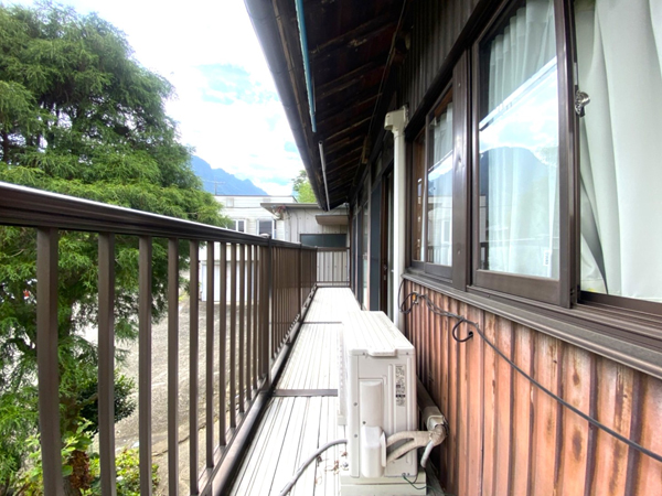 富岡市と安中市にまたがる「妙義山」は日本三大奇景の一つとされる山である。春は桜、夏は新緑、秋は紅葉と1年を通して美しい景色を楽しむことができ観光地として賑わう。物件はそんな妙義山の目の前に建つ。1階に5部屋、2階に3部屋あり、家族が多くても安心な部屋数。築年数は不明だが室内はリフォームされており、直さずともすぐに住める物件だ。2階のバルコニーからは妙義山の姿を楽しめる。住宅の隣にある広い倉庫ではお店を営むのも面白い。オーナーも事業用のサッシ屋を営んでいた。購入者の工夫によって様々な楽しみ方ができる物件である。