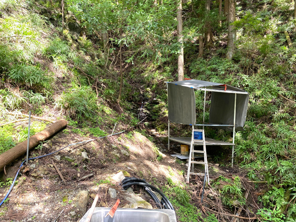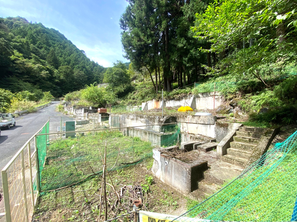 埼玉県の南西部に位置する飯能市は市域の約75%が森林で覆われる自然豊かな町だ。春には桜、夏には川遊び、秋には紅葉を楽しめ観光地としては勿論、東京圏からアクセスが良く、子育て支援にも力を入れている。土地は石灰石の採掘の事業をしていた鉱業所の跡地である。まるで城郭のような土台はなかなかの迫力だ。オーナーはこの土地を拠点にイワナの飼育や集落跡の探索、菜園、山道のハイキングを楽しんでいる。勾配を進めば廃村集落の白岩集落や石灰石を運んでいたトロッコロール跡もあり散策するだけで刺激を感じる事ができるだろう。異世界に来たような無人の空間があなたを待つ。
