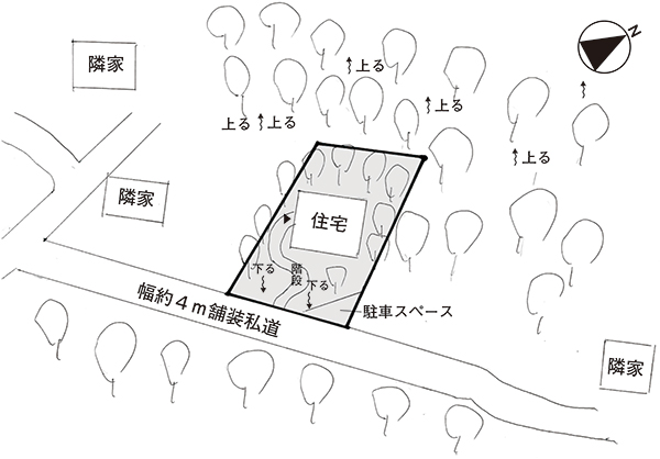 | 接道状況 | 南東側が幅約4mの舗装私道に接する |