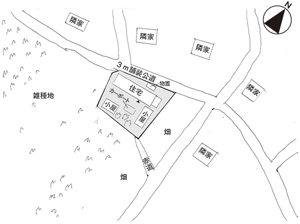 | 接道状況 | 北西側が幅約3.5mの舗装公道に接する |