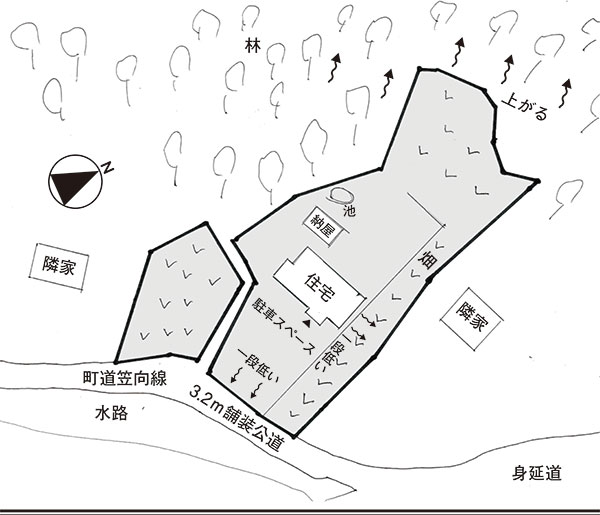 | 接道状況 | 東南側が幅約3.2mの舗装公道に接する |