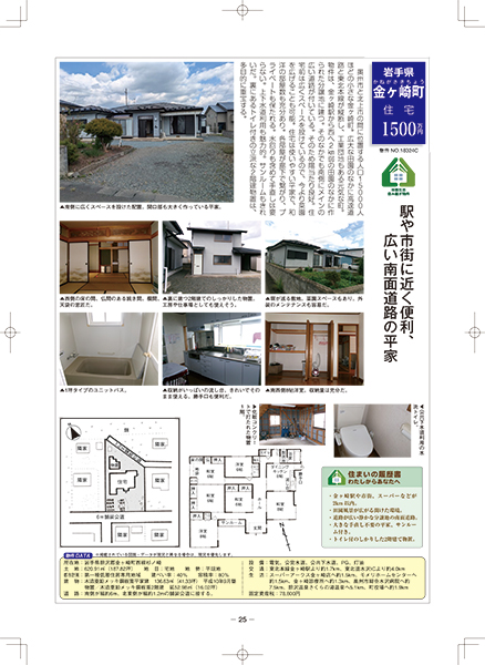 全国 田舎暮らし物件 > 岩手県 > 駅や市街に近く便利、広い南面道路の平家